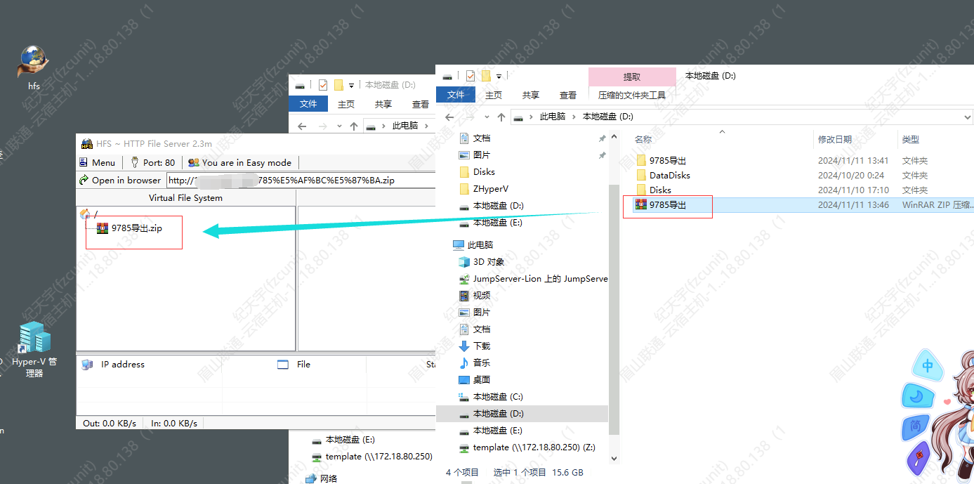 10.下载完成后,将宿主机复原(关闭HFS工具,如果刚刚有关闭防火墙请打开),将文件上传到网盘分享并交付即可。
