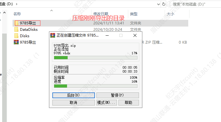 点击导出按钮,等待导出完成(具体进度可以在Hyper-V管理器看到)